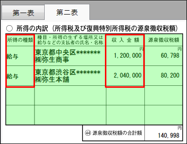 第二表 で入力した内容が 第一表 に反映されない 弥生会計 サポート情報