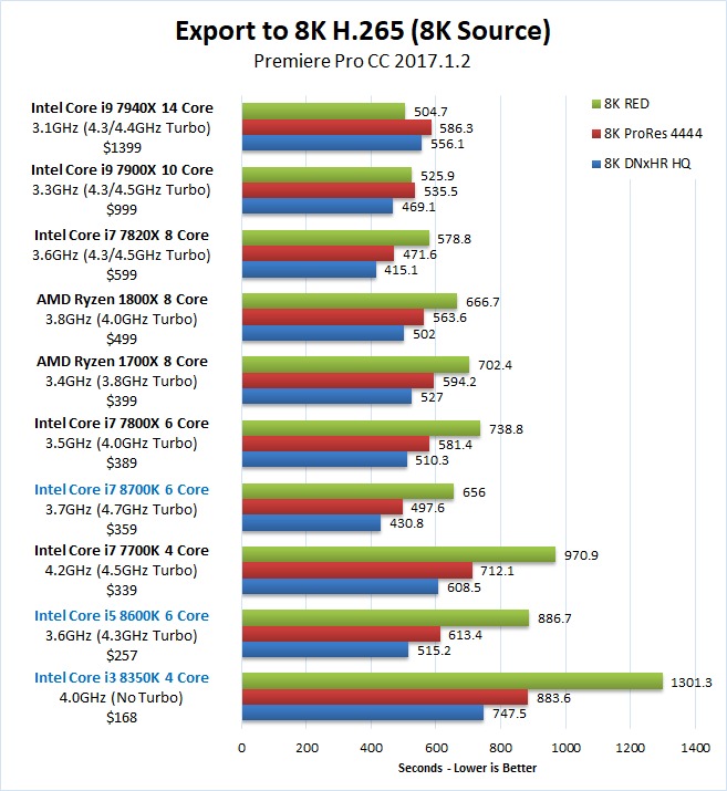 Premiere Pro Cc 2017 1 2 Cpu Performance Core I7 8700k I5 8600k I3 8350k