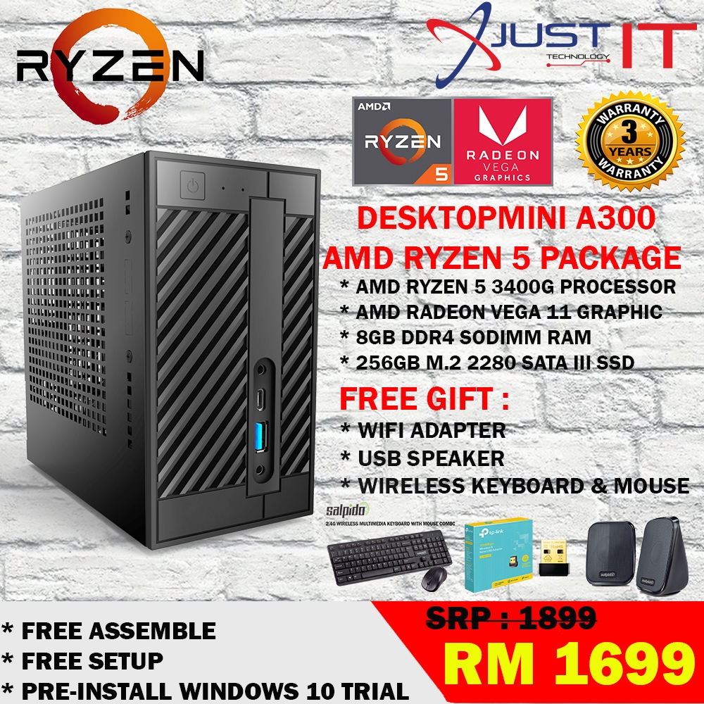 Amd Ryzen 5 3400g 4 2ghz 8gdr4 256gb Ssd Radeon Rx Vega 11 Graphics Desktopp A300 Package Shopee Malaysia